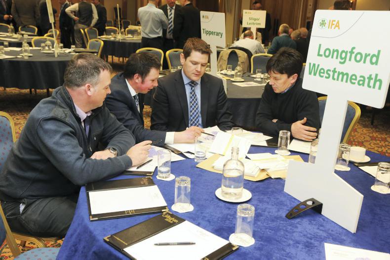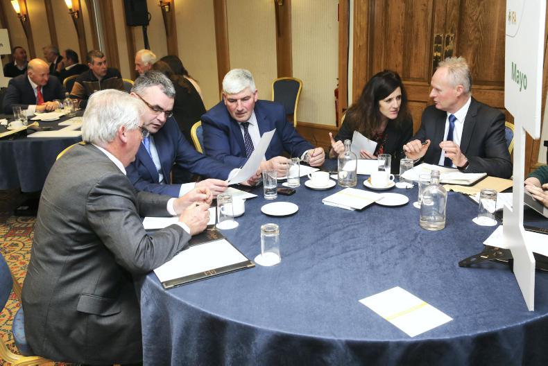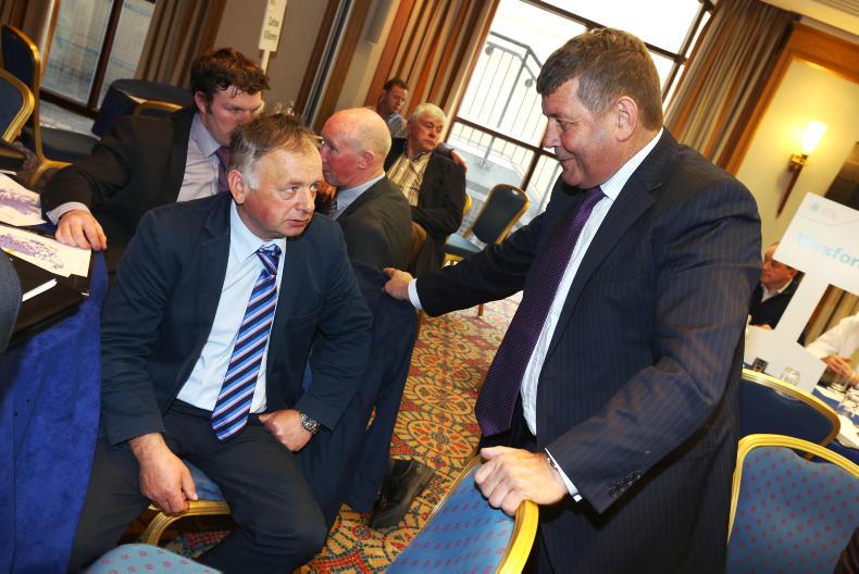 Pat Dunne, hill committee chair, talking to Andrew Doyle TD, Minister of State at the Department of Agriculture, at the IFA ANC briefing last week.
