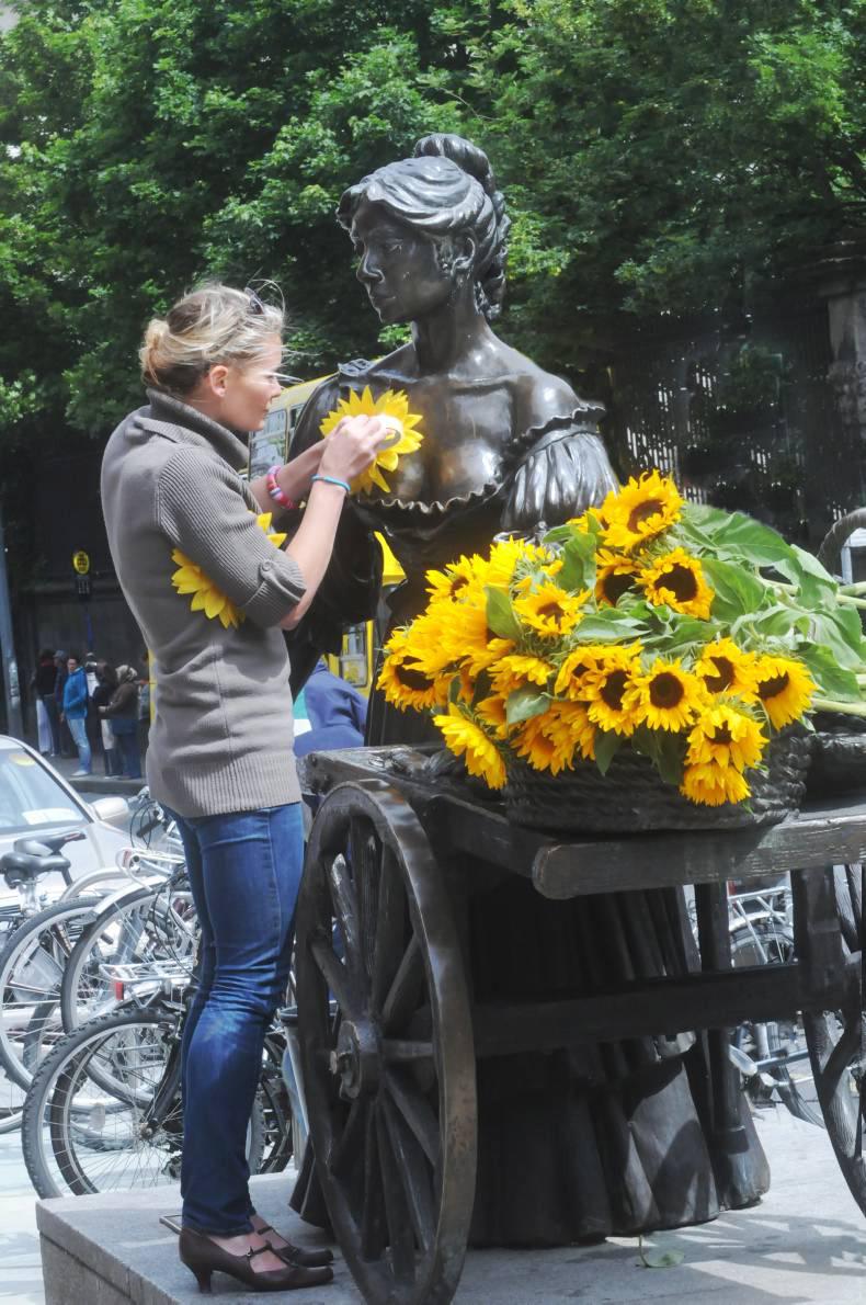 Sabrina Kevany,Killiney, decorates the Molly Malone bronze sculpture in Dublin to highlight Sunflower Days for Our Lady's Hospice Harold's Cross last year