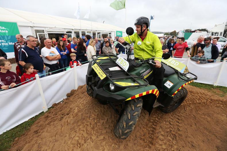 Noel Guinan, CBT Group Clonmel is pictured giving the FBD Quad skills safety demo at the National Ploughing Championship. \ Donal O'Leary