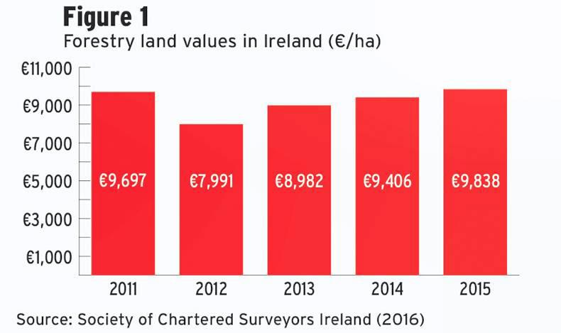 The average price paid for forests last year was €9,838/ha, which is marginally higher than 2011, when €9,697/ha was achieved. Prices dropped in 2012 to €7,991/ha, but there has been a gradual increase since then (Figure 1).
