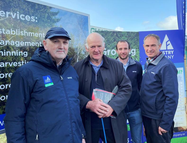 promoting the new programme and Ireland’s Forestry Strategy 2023-2027. Visitors to the stand, including Olive Leavy, secretary of the Irish Forest Owners; Jason Fleming, chair of the IFA forestry group, and Pat Leavy, forest owner and farmer, were discussing the programme with Barry Delaney, director of forestry at the Department.