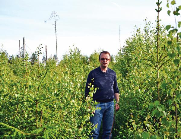 He faces the same problems as most forest owners in removing the vigorously competing birch during reforestation. He cleared the birch with a brushcutter around the reforested trees and believes that two clearances will be sufficient.