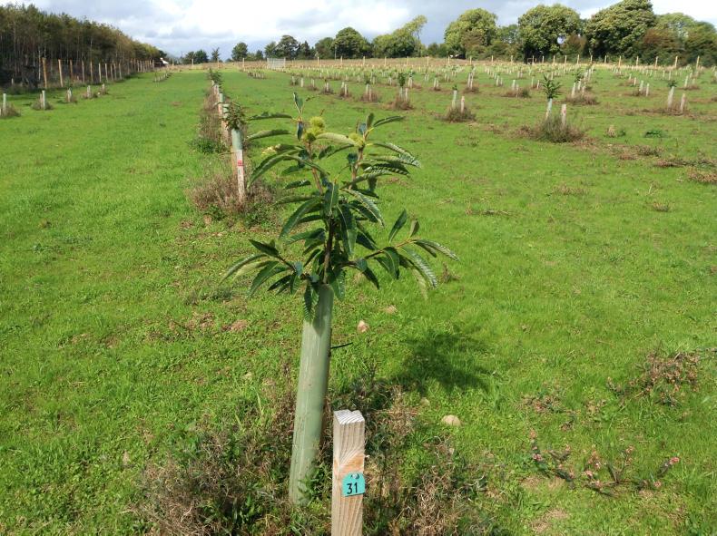 “In 2016, two chestnut orchards were established, one in England, while the first chestnut clonal seed orchard in Ireland was established in the lands of Ellen Parkinson at Kilmacthomas, Co Waterford. By virtue of being grown from grafted stock, this orchard is expected to start producing viable quantities of seed in about 10 years.” In the meantime, private nurseries can provide limited supplies mainly sourced in France and the UK.