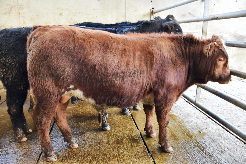 This Simmental young bull, born 16 September 2024, weighed 416kg and sold for £1,670 (401p/kg).
