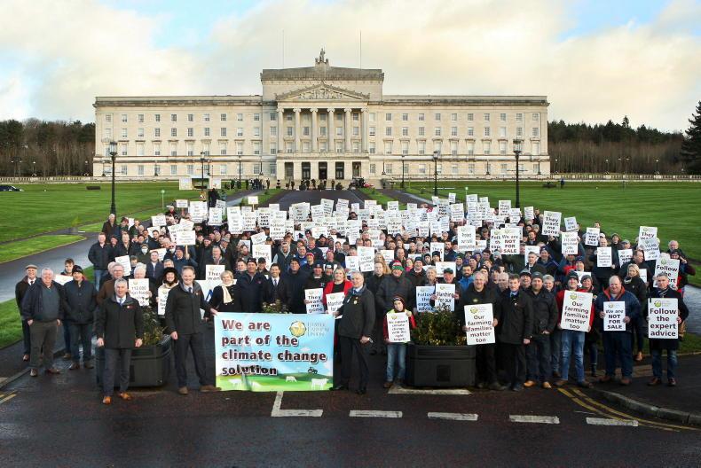 A rally was held by the Ulster Farmers’ Union (UFU) at Stormont on Tuesday as part of its final push to persuade MLAs to support the at least 82% emissions reduction target.