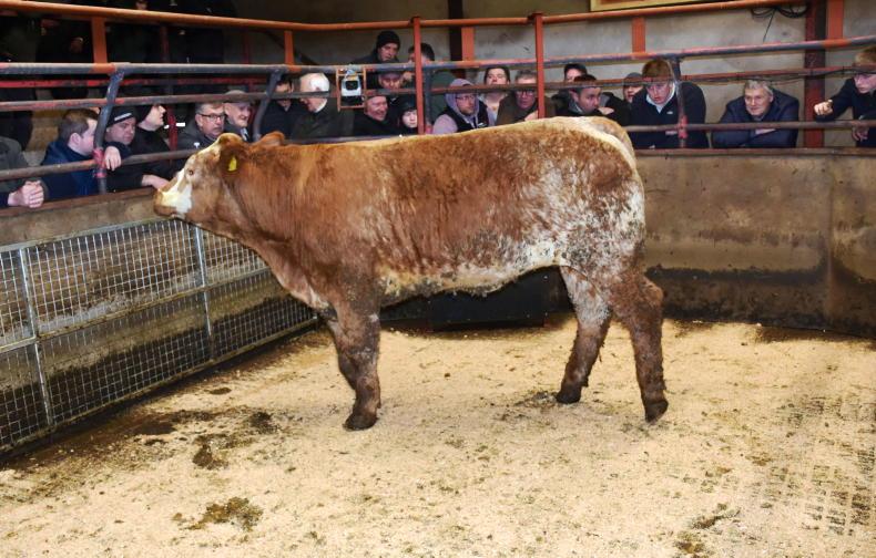 This 25-month-old Simmental heifer weighed 585kg and sold for £2,280 (389p/kg).