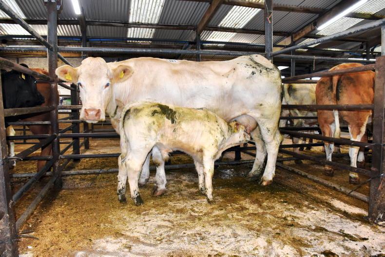 This 2022-born Belgian Blue cow with a February-born Limousin bull calf at foot, made £4,500.