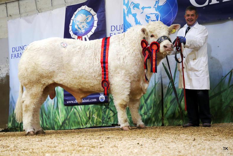 The first-prizewinning Fymore Outstanding was the next bull to receive a 4,000gns bid. Bred by Sean McCaughey, his pedigree contains Fury Action and Crossmolina Euro.