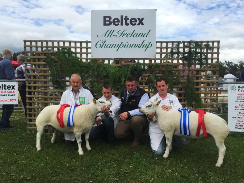 Judge John Harbinson selected John and Sean Brown’s shearling ewe as the 2017 Beltex national champion at the society’s finals held at the Athlone Agricultural Show recently. The Boherawillin flock from Durrow, Tullamore, Co Offaly, is no stranger to winning the championships having secured the overall title every year from 2012 to 2015.