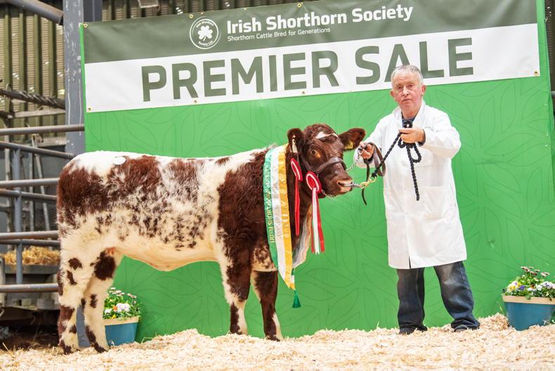 Johnny Keane with Bushypark Roisin, the junior female champion at the society's pemier sale in 2024. \ Swarber Photography