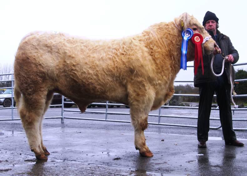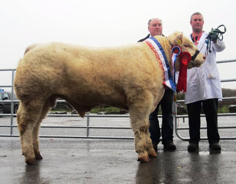 Two bulls shared the price tag of €4,000 in what was a small selection of Charolais bulls on offer in Ennis on Saturday last.