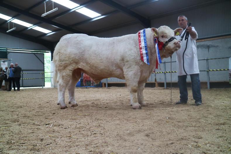 The Irish Charolais Cattle Society held the last of its spring sales in Tullamore last Saturday.With just over one-third of the catalogued animals forward for sale, the bulls present were in high demand. In all, 30 of the 34 bulls sold to average €3,518, up nearly €350 on last year. Coming out on top of the show ring and subsequently the sales ring was Thomas and Collette Connor’s Derrylough Leader. After much deliberation, judge Sean McGovern tapped the December 2015-born bull forward.