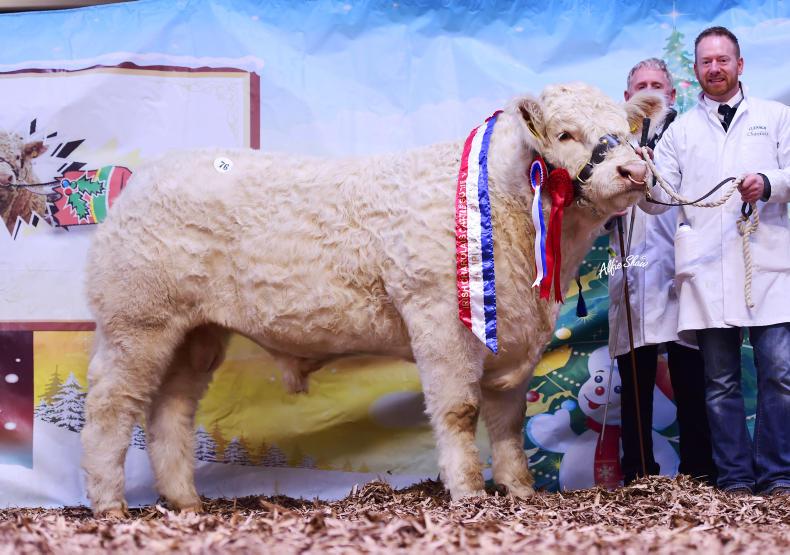 Topping trade at €13,000 was the pre-sale show’s junior champion Clenagh Lyle from Co Clare breeder Michael Quinn. This wasn’t Lyle’s first time in the show ring, having secured the senior male calf champion title at the society’s national calf show held at the same venue in September. Sired by Domino and out of home-bred Clenagh Tranquil, the 14-month-old embryo-bred bull boasted five stars down the line. Lyle will now join the Burradon pedigree Charolais herd in Northumberland, England, which is owned by Messrs Curry.