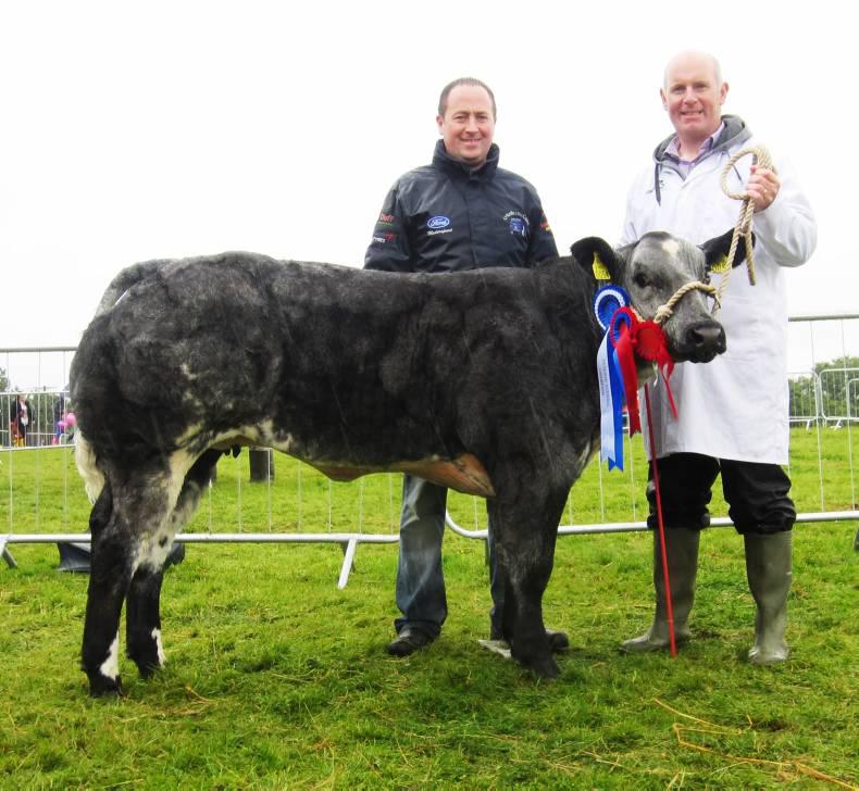 As the rain hammered down on the Cavan/Longford border yesterday, Clonguish Elegant (above), bred and exhibited by Joe McGarry from Newtown Forbes, Co Longford, was awarded the overall Simmental and interbreed champion of the show.