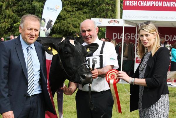 A nine-year-old Holstein Friesian cow, Dalevalley OTI J Lulu, was crowned the Diageo Baileys Irish champion at the Virginia Show. The cow is owned by Eugene Murphy and his son Sean, both from Waterfall, Co Cork. The cow is no stranger to the show ring, having previously won the competition in 2011 and receiving the rosette for reserve champion in 2012. This years’ win has allowed her to set a new record for being the only cow to have won the competition twice.