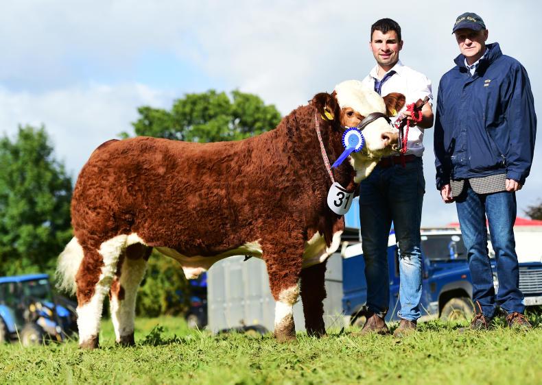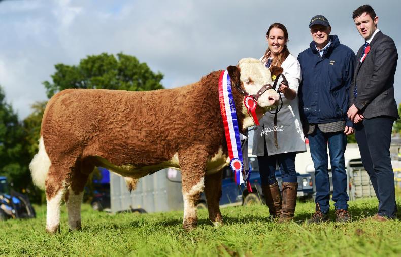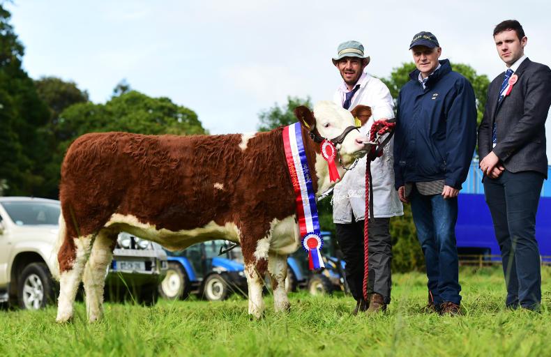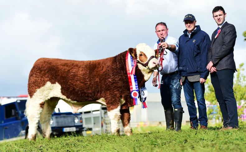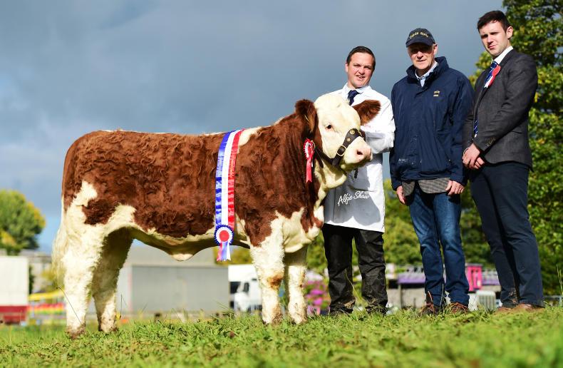 Taking the red rosette here was Tisaran Her Majesty, exhibited by Martin Mooney, Shannon Harbour, Birr, Co Offaly. This Curaheen Tyson heifer calf is out of Anatrim Bodybuilder dam Fearna Faith, who had won the Simmental champion of the show earlier in the day. Reserve senior heifer calf went to Declan Oates, Castlegal, Co Leitrim, with Tawley Hanna. This calf is sired by Hillcrest Butcher and is out of Annadale Dainty.