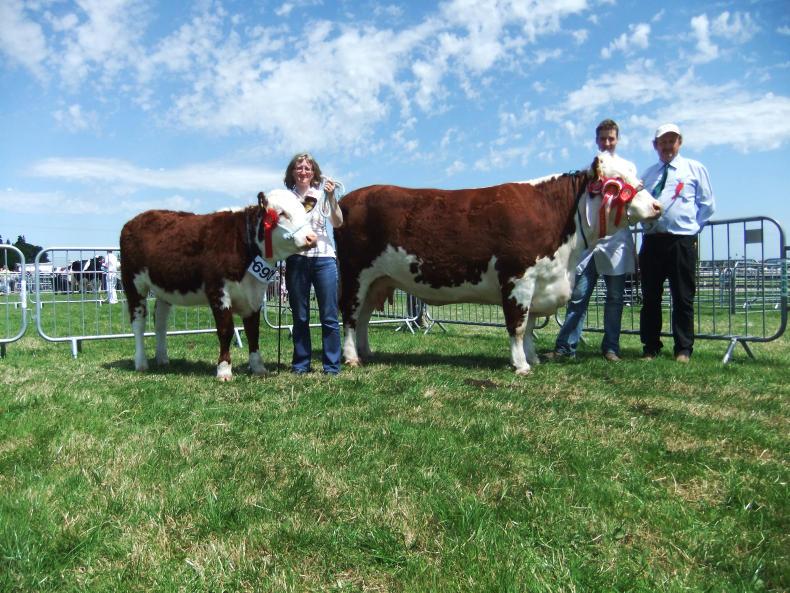 A well-sponsored Hereford section at Gorey show led to a drop in numbers at Cork however, classes remained well contested with quality throughout. Tom Roycroft was out on top in this section with his six year-old cow Springvilla Miriam.