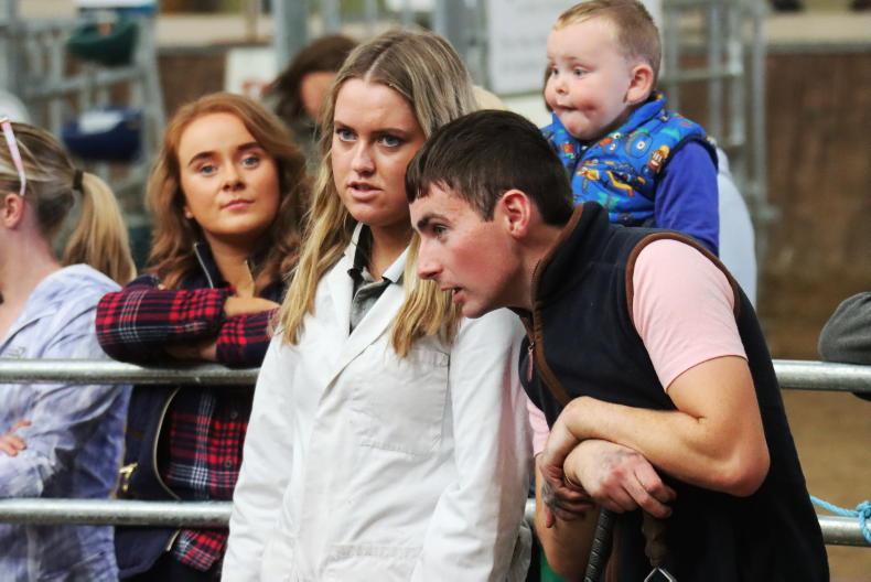 Chloe Goggins, Fergal Flanagan and Mike Hannon watching on at the Commercial Cattle judging at Glenamaddy Show. \Shanon Kinahan