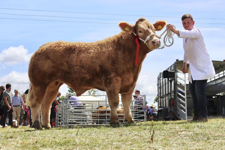Robin Leahy with his first-prizewinning bullock Rocketman at the 2023 Claregalway Show. /Shanon Kinahan