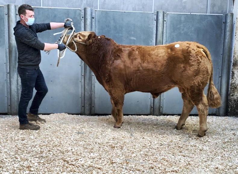 Also hitting the high notes in the Limousin breed was Kilkenny Price, who sold for €3,500. Bred by local breeders Joe and Michael Moran, this September 2019-born bull is sired by Lodge Hamlet, with Hamac and Fieldson Alfy also in the back breeding.