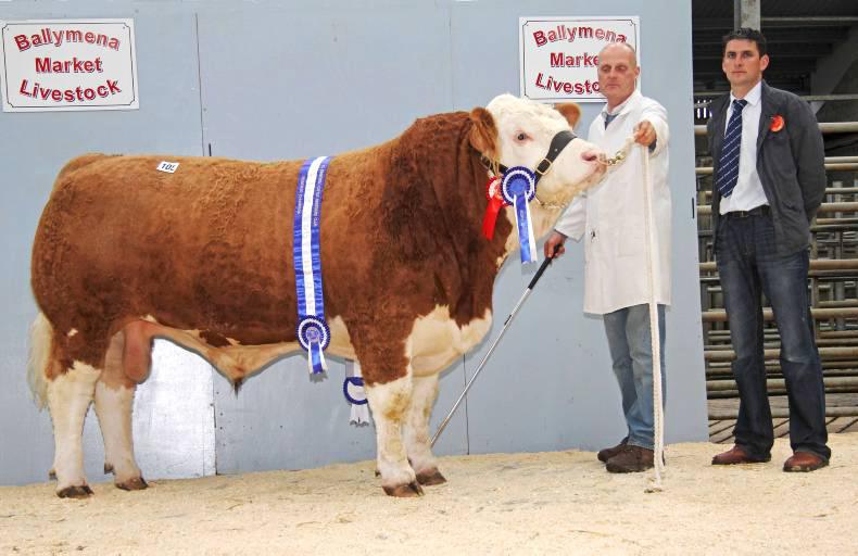 First prize winner, Breaghey Fernando, changed hands at 3,100gns for Andrew Clarke from Tynan, Co Armagh. This 13-month-old bull was sired by the 6,600gns Omorga Baldwin (supreme champion at Dungannon in 2011) and is out of a Kilbride Farm Newry daughter. The buyer was Norman Thompson from Killaloo, Co Londonderry.