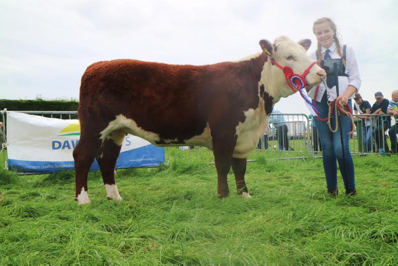 In the Herefords Ciara McNamara secured the overall championship with Allowdale Serena. This not even two-year-old heifer was purchased at the Allowdale dispersal sale last year for the top female price of €4,800. She is sired by UK bred bull Haven Kingpin. Reserve was awarded to Trevor Dudley with Kilsunny Lass Matilda. This heifer by Glaslough Judge stood second in class to the overall champion before eventually being tapped out reserve by judge Gerry Lynch.