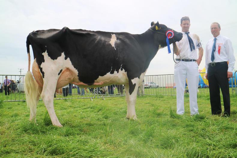 In the dairy section the overall championship was awarded to the five-year-old Robinview CIX Rowena. Exhibited by Michael McGrath, this third calver is currently given nine gallons with a projected 365 day milk yield of 10,500kgs. Judge Robert Shanahan didn’t hesitate in awarding the CIX-Sept daughter the overall championship on her first day out.