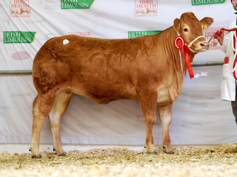 Standing senior champion and first in the same class as Moruinho was Coraghy Monkeytricks ET from Thomas O’Harte, Clones, Co Monaghan. This July 2017-born bull is a son of the successful AI bull Ampertaine Foreman and imported dam Dinmore Latena. Monkeytricks, however, failed to meet his reserve and left the ring unsold.