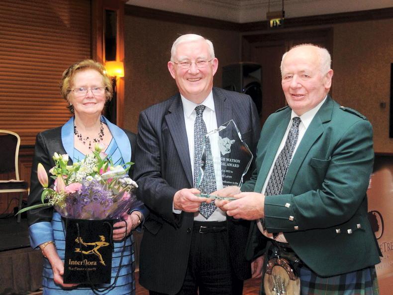 William McLaren senior, along with his wife Catherine, receiving the Hugh Watson Award from the Aberdeen Angus Cattle Society in 2013 for his lifetime of dedication to the Angus breed.