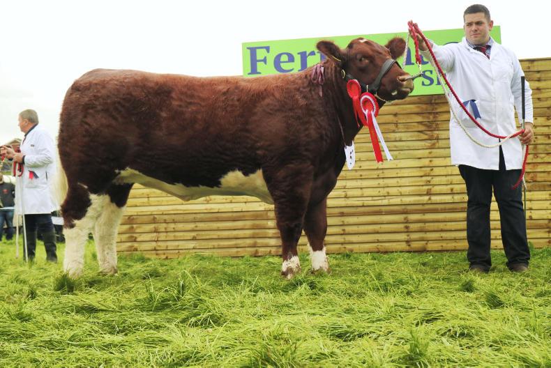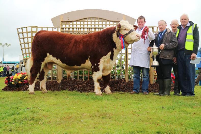 Gary McKiernan exhibiting the Hereford champion Shlioh Farm Dynamite at Arva Show. Dynamite also secured the championship at Tydavnet and the reserve male title at this year’s national in Tullamore.