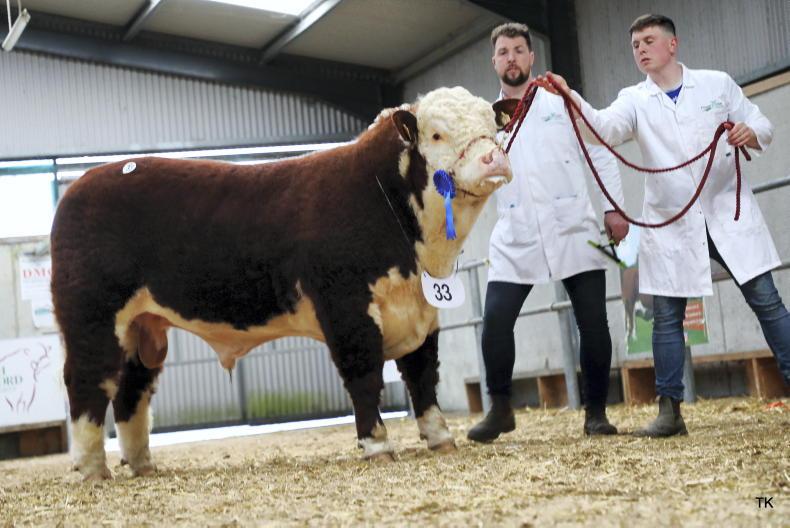 Trade was on fire at the Irish Hereford Breed Society’s first sale of the year at Golden Vale Mart in Tullamore on Saturday. It has been reported as one of the best Hereford sales for some time, with a sale average of €5,039 for 23 bulls sold.