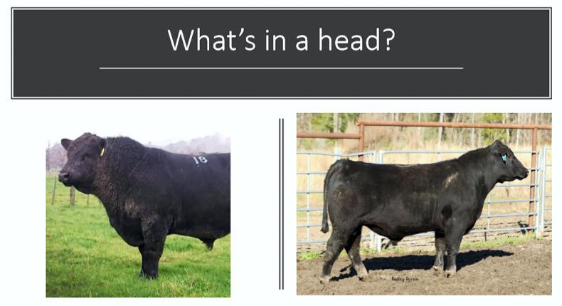 When describing the second bull (right-hand side of the picture above), he said the animal has a longer skull, a more refined jaw and smaller muzzle. He's longer from the poll to nose and is bug-eyed (not much of an eyebrow or sticking out).