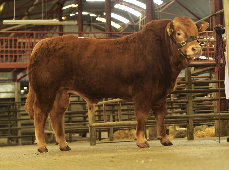 Oldtown Pedro from William Hogan, Thurles, Co Tipperary, sold for €4,000. Sired by the old reliable Wilodge Cerberus, he is out of a Broomfield Regentcey dam. Born September 2019, this bull boasted a page of stars and was the choice of Philip and John Dixon.