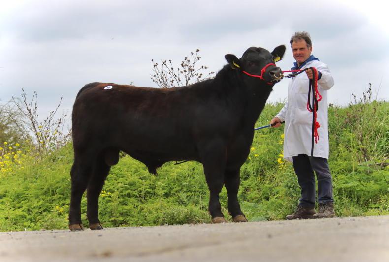 Carrowboy Vernon sired by Rawburn Boss Hogg and bred by Alan and Frank Gibbons, Co Roscommon, was the highest-priced Irish Angus bull sold at an official Irish Angus Cattle Society spring sale throughout the 2023 spring season. He sold for €4,100.