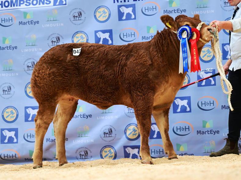 Topping the trade and matching the record price for a Limousin heifer sold in Northern Ireland at 25,000gns (€30,418) was Nugent Allspice ET from Nugent Estate and Farm Ltd.