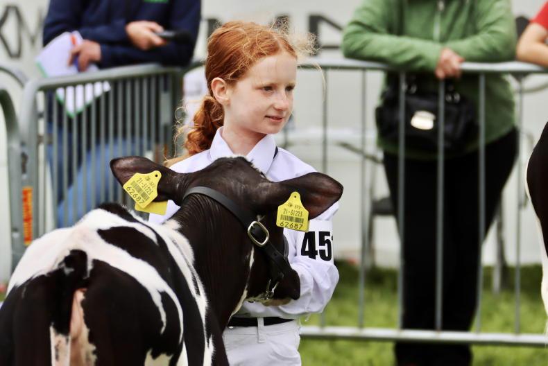 Nora O'Carroll exhibiting her calf in the under-12 dairy young handlers class. \ S. Kinahan
