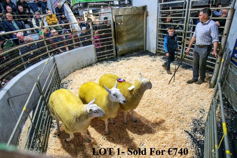 Top price of €550 was paid for the first-prize-winning batch of three bred by the Speenogue flock.