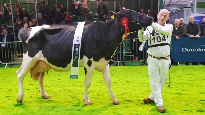 The August 2014-born Holstein cow was exhibited by Cyril Dowling from Co Dublin and was placed as Holstein breed champion minutes beforehand by Behnke.