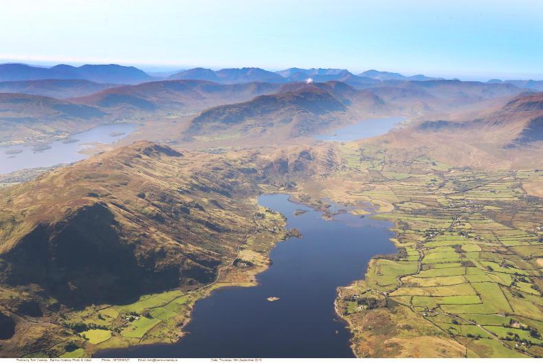 The largest lot in terms of agricultural area is number six, Glenbeg Hill, which comprises 425ac and is guided at €250,000. The purchaser of this (lot 6) will have the option to take over the sheep flock by separate negotiation at an additional price. The land rises from a low point of about 18m above sea level at Lough Mask to a high point on the southeast boundary of about 372m. The hill is fenced in four principal sections. Loading pens and smaller enclosures for gathering are next to the road.