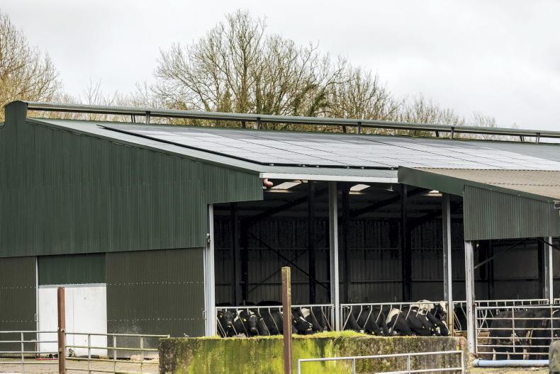 Solar panels on a slatted shed in Co Longford. \ Philip Doyle
