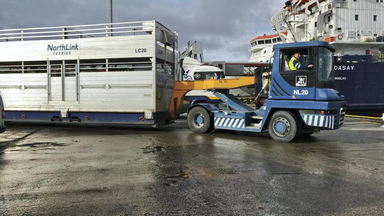 Live lambs sold at Lerwick mart being loaded on to the Northlink ferry to Aberdeen