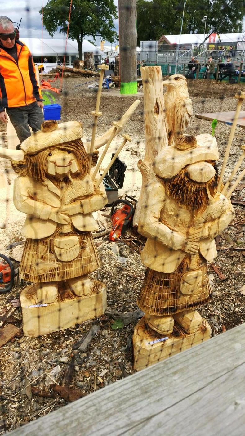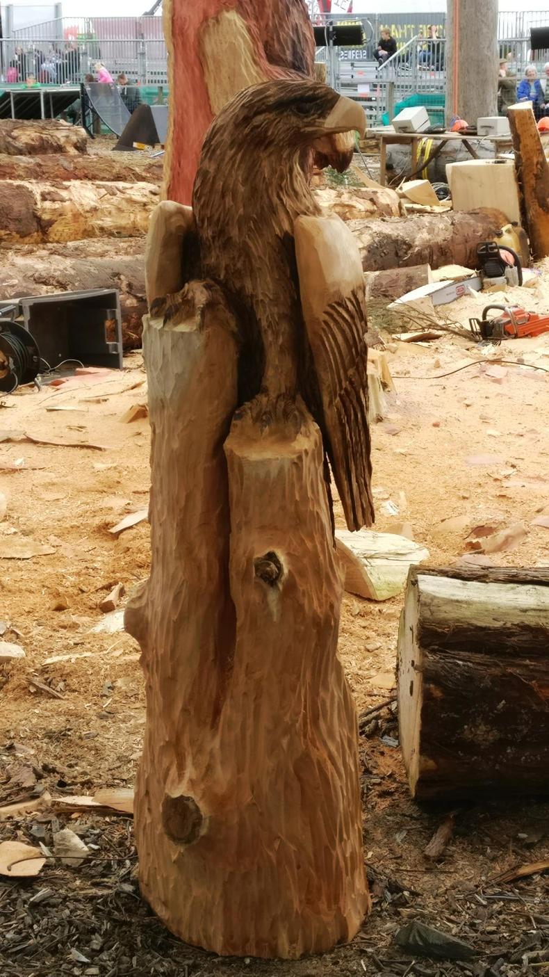 He has been carving for 15 years now and demonstrates the craft with two others at the show. The demos take place for an hour in the morning and an hour in the evening, as well as filling in time between other forestry demos. They sand and burn their carvings in between times to get them finished and be able to sell them at the show itself.