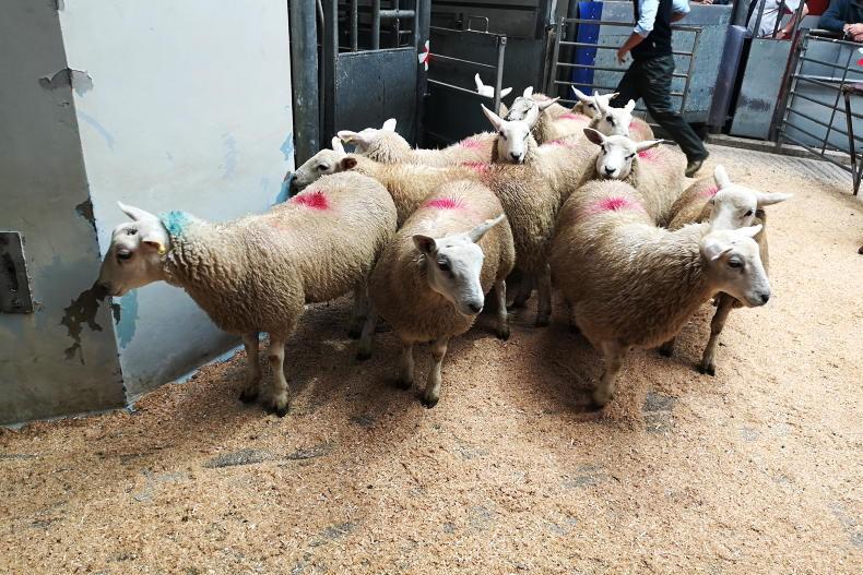 Seven Texel lambs weighing 45kg sold for £100/head.