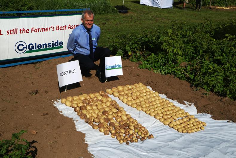 “I am concerned about the loss of chemicals in farming and how we can cope. We’re working with experts who are using microbial and biostimulant products instead of standard fungicides. You can see the success in the plants with the new products used in the row to the left. We are growing about 150,000t of potatoes with 20,000t of seed going into the UK and European market.”