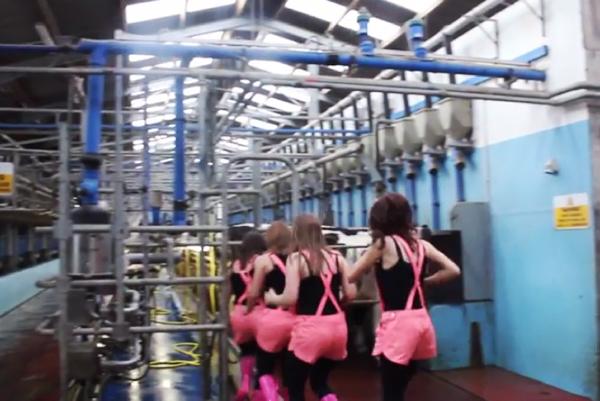 However, he got a surprise when his bride Ciara Lynch and her three bridemaids made a swift exit from the reception at the Garryvoe Hotel to tackle an evening milking in style.