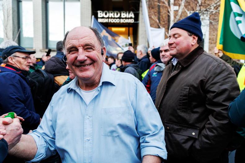 Ironically, Tom Byrne, one of the five IFA farmers who staged a 28-day sit-in at Bord Bia’s headquarters, was one of those left outside while Kehoe made his protest. When the meeting eventually began, Byrne was given a resounding standing ovation by his fellow farmers.