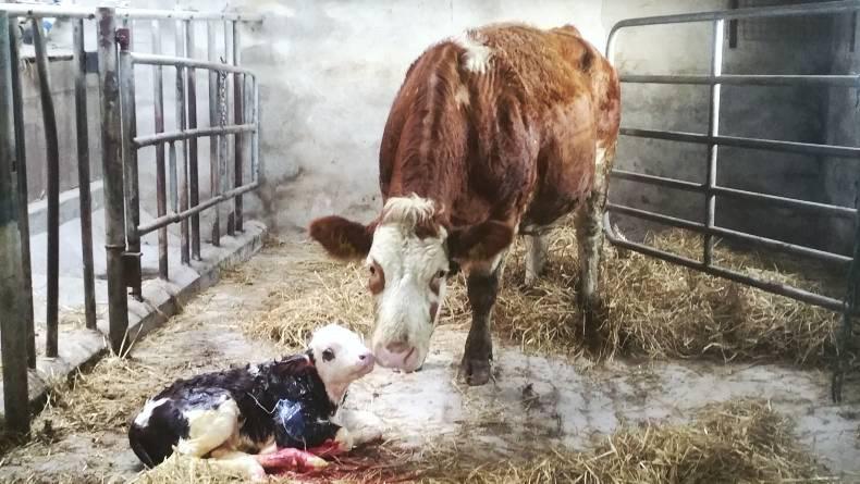 I rearranged things to get them to the right shed and as the calf was a little cold, he was unwilling to suck. I decided to stomach tube-feed him with colostrum instead. While I was doing this, I noticed a second calver who calved the night before was very restless.