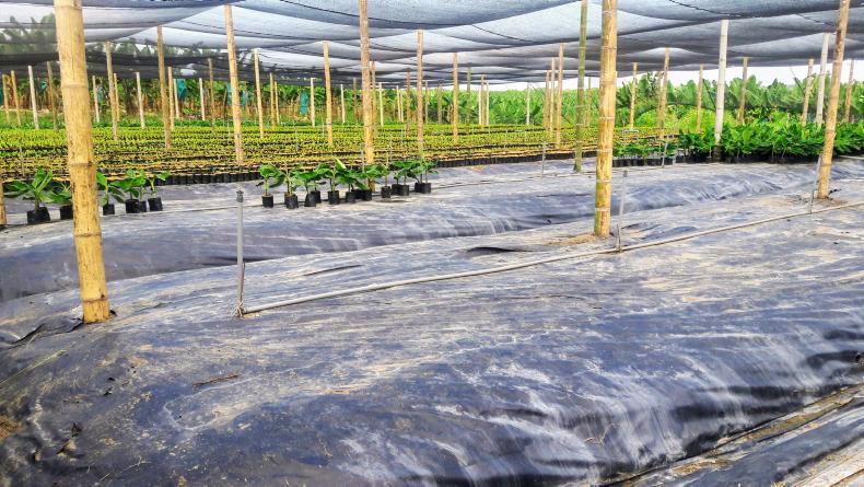The banana plant is a perennial herb and the most common variety is the Cavendish. The fruit is harvested green throughout the year. It takes nine months from the planting of a banana bulb to the harvesting of the first bunch.