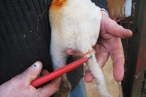 If you have the proper knack of wringing off tails the technique can be used on fully grown sheep. You split the wool on the tail, grab the tail stump in one hand. Use the other hand to give the tail a twist/flick. Off comes the tail. If done right there is very little loss of blood.