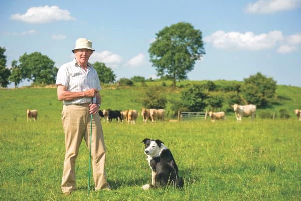Paddy Donnelly (PRO For the Mullingar Agricultural Show) pictured on his farm in Balrath, Bunbrosna, County Westmeath with his dog Toby.
